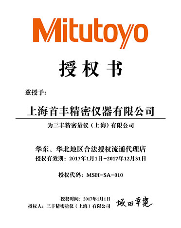 公司于2013年至今連續十年取得華東、華北合法授權流通代理店和華東、華北合法授權儀器特約店等資格證書,測量儀器類為三豐公司五星級代理,具有強有力的價格優勢。2021年,公司秉承"顧客至上,服務優先"的經營理念,堅持"竭誠服務"的原則為廣大新老客戶繼續提供更優質的服務!